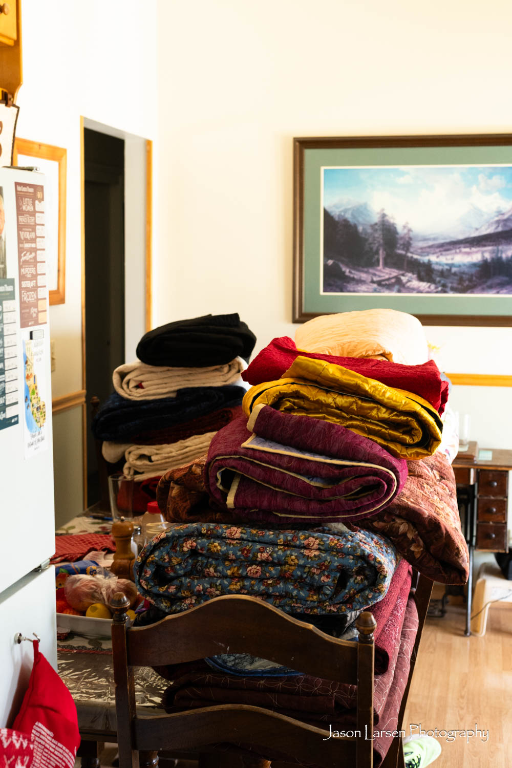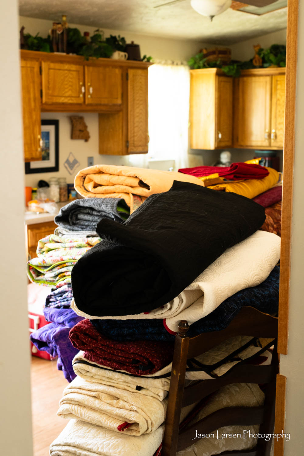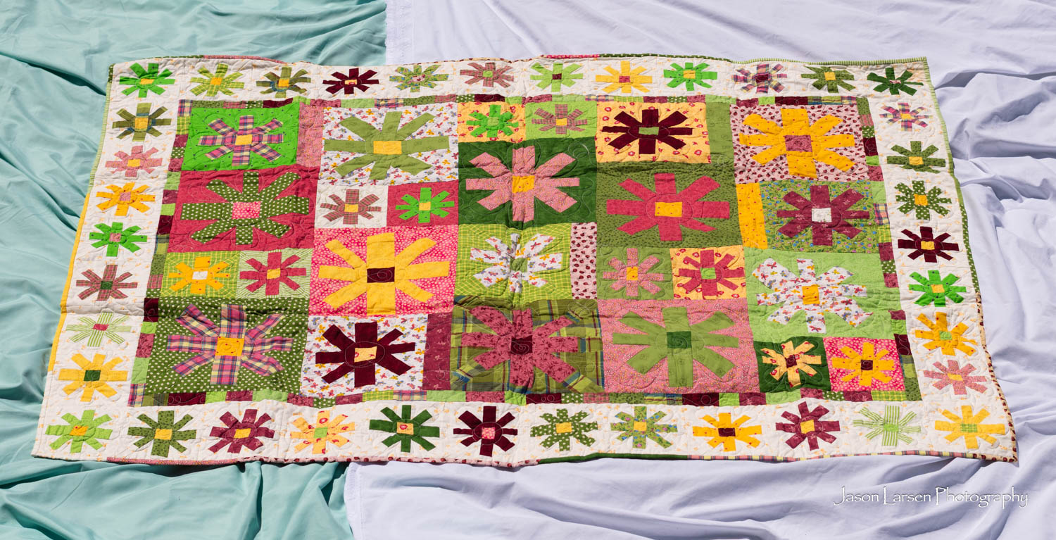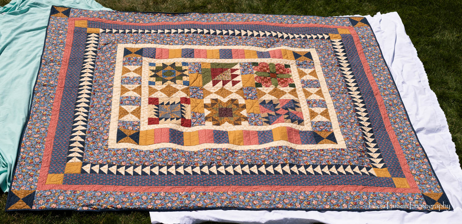 Another one of my favorites. These quilts are huge, most larger than a king size. I thought I would just rotate the quilts in post, but I had to stand on a ladder to photograph them and rotating them ruined the perspective. Sorry about that, Mom. I’m glad to have photographed these priceless quilts.