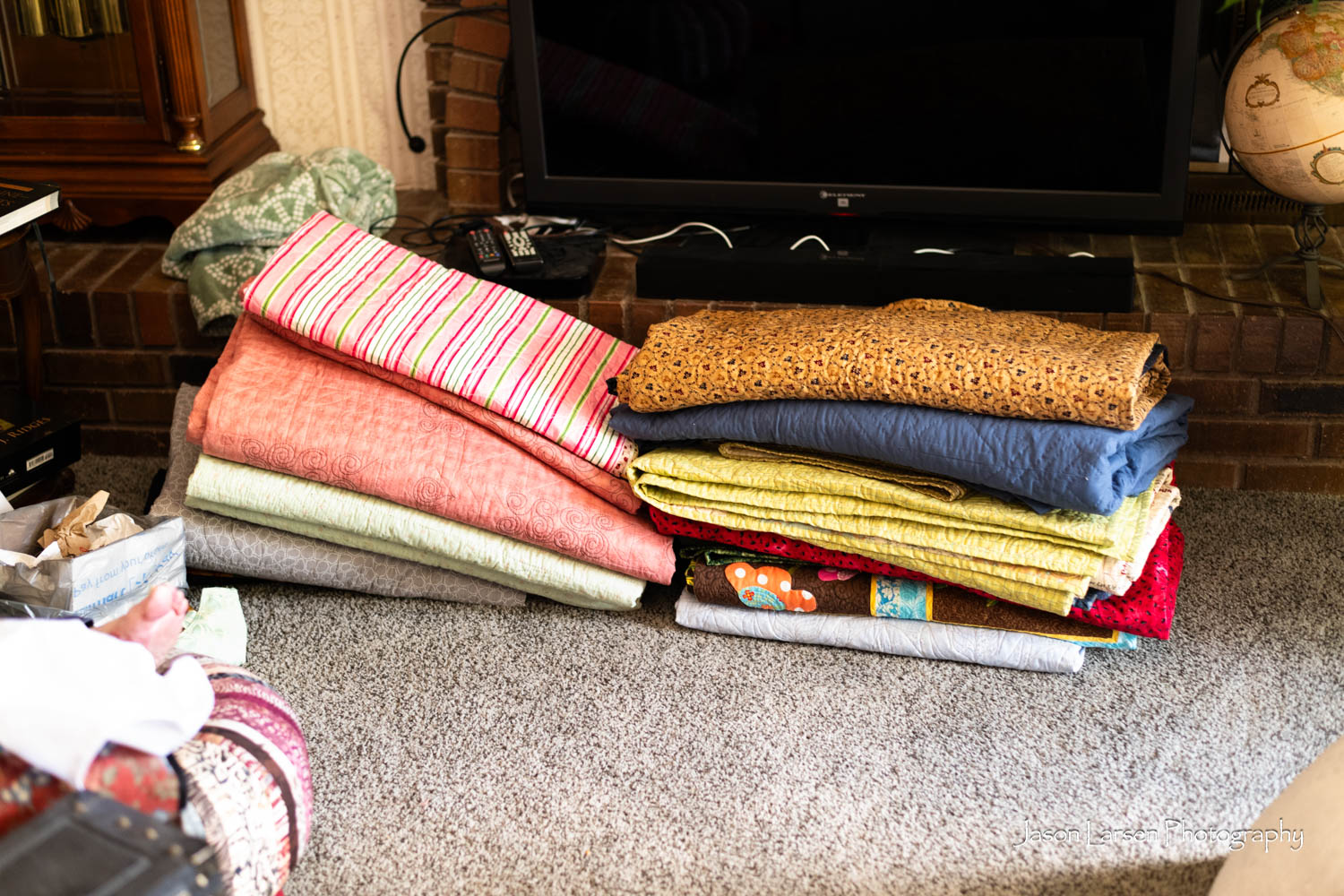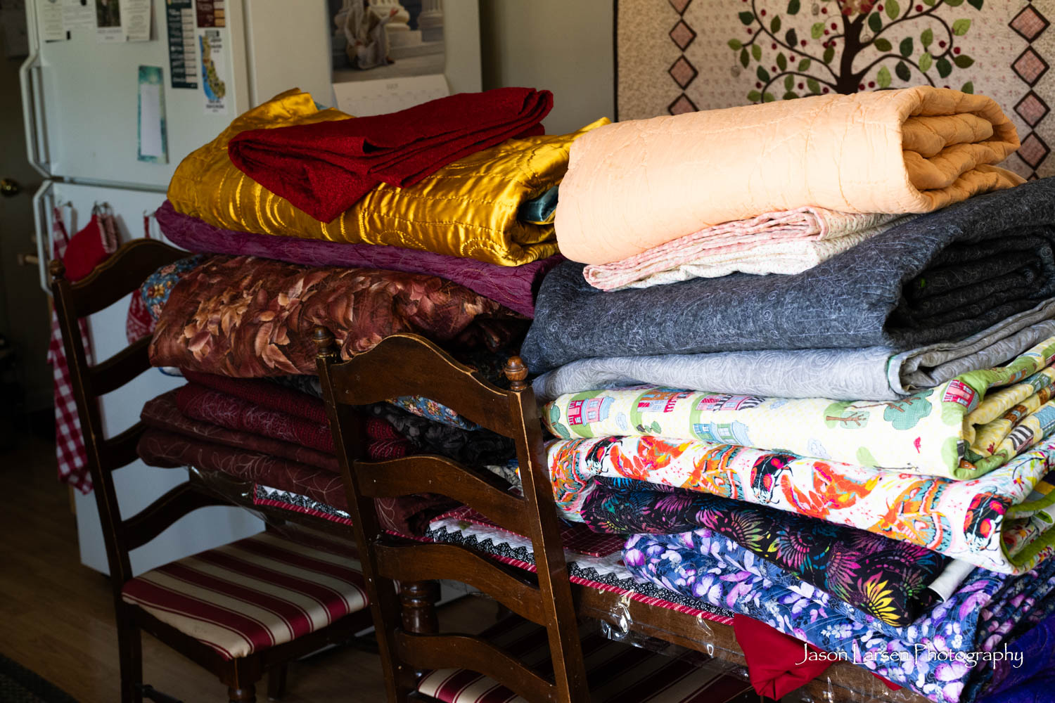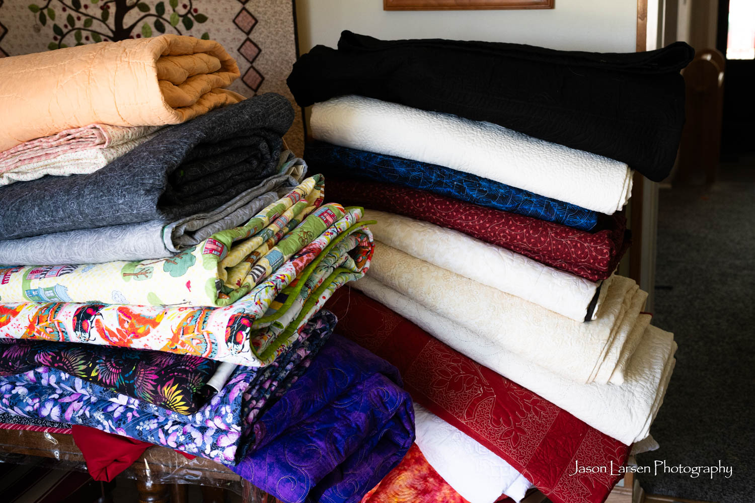 Another one of my favorites. These quilts are huge, most larger than a king size. I thought I would just rotate the quilts in post, but I had to stand on a ladder to photograph them and rotating them ruined the perspective. Sorry about that, Mom. I’m glad to have photographed these priceless quilts.