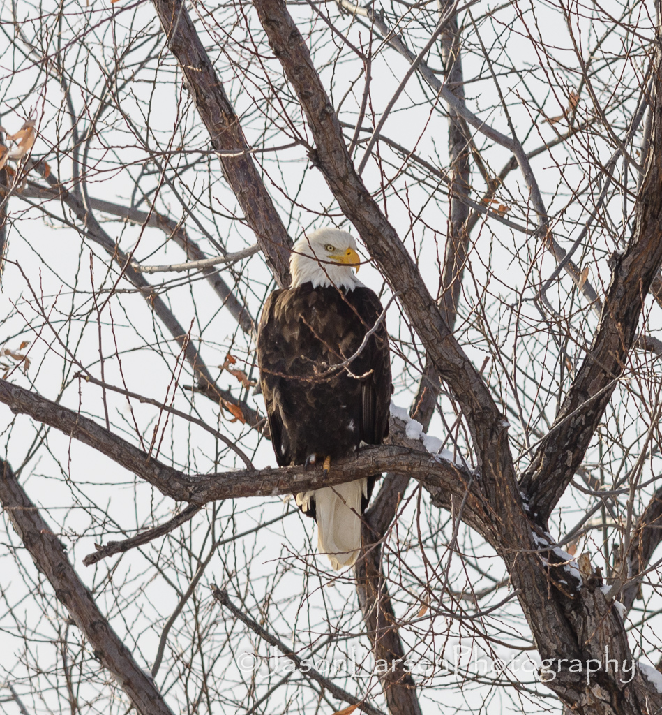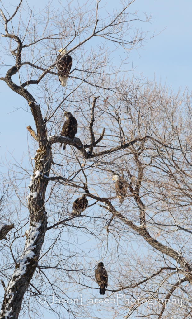 There were plenty of golden and bald eagles to photograph on Tuesday, but unfortunately the sun was behind the raptors from the direction you photograph. This made it difficult to get detail in the shots. My next trip over will be in the early morning so the sun will be on the other side of the trees where they roost. This will result in direct light on the birds and not side or backlighting.