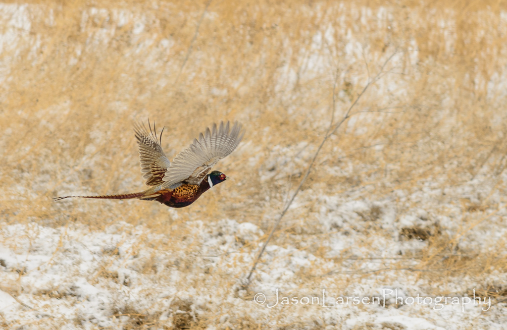 We, Linda and I, were hoping to see more pheasants on this shoot. The male ring-necked pheasant’s coloring against the snow is beautiful.