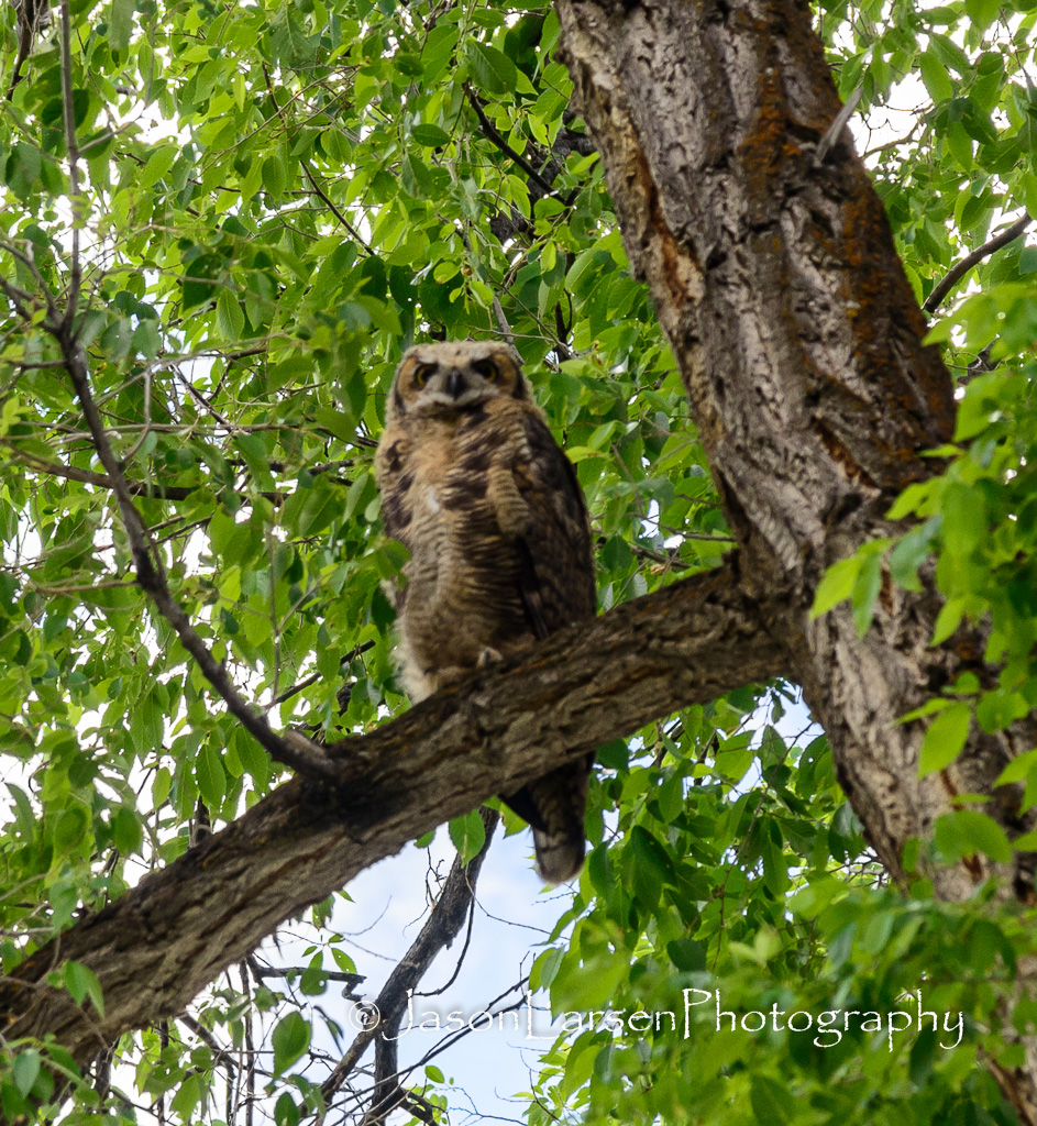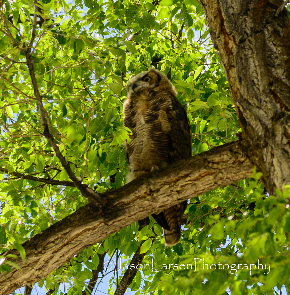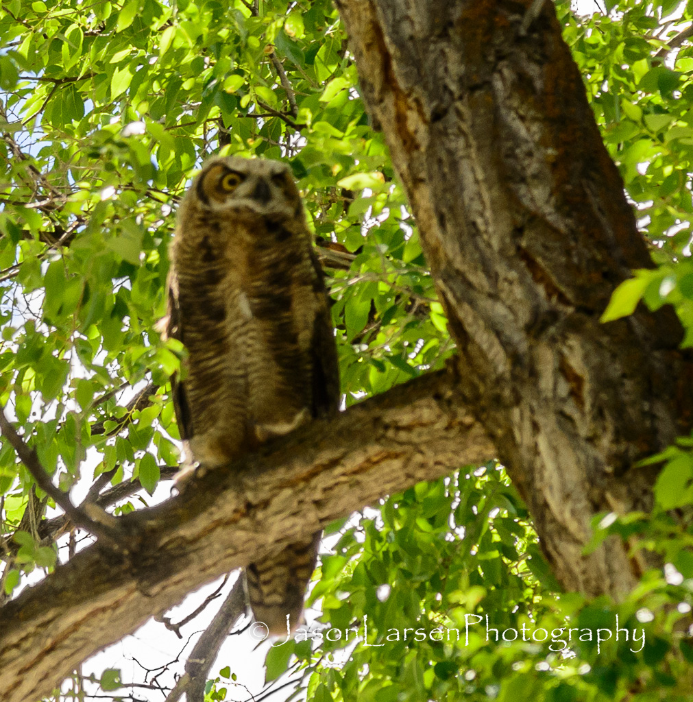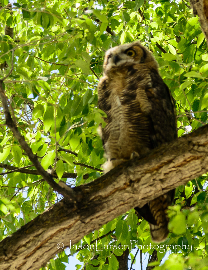 On the Saturday of Eagle Flight Days, as we went over to the city park for rides and fun, we were treated to 3 owls in one of the large trees in the park.