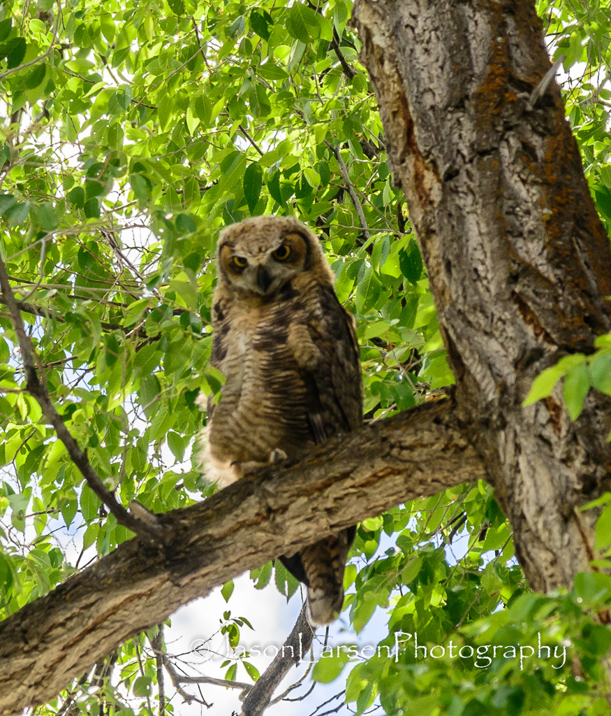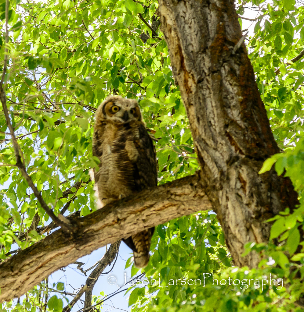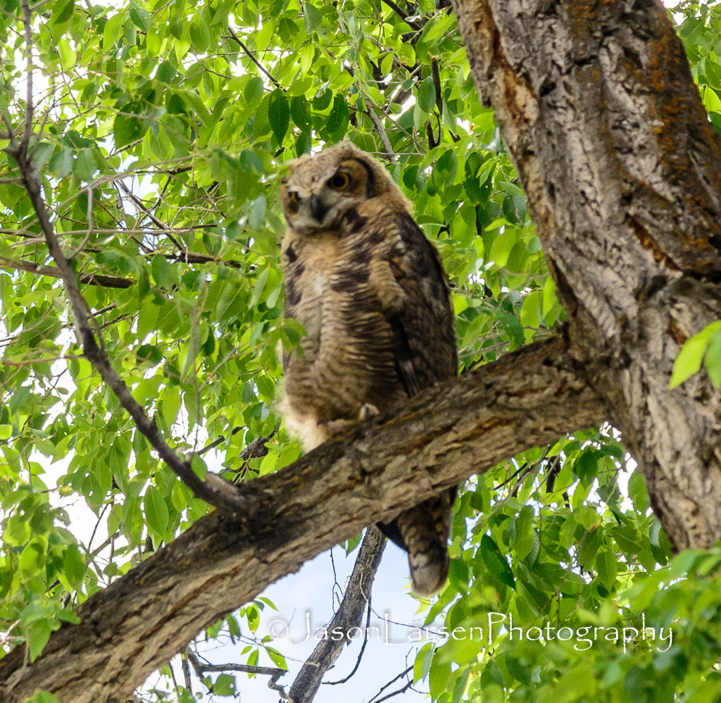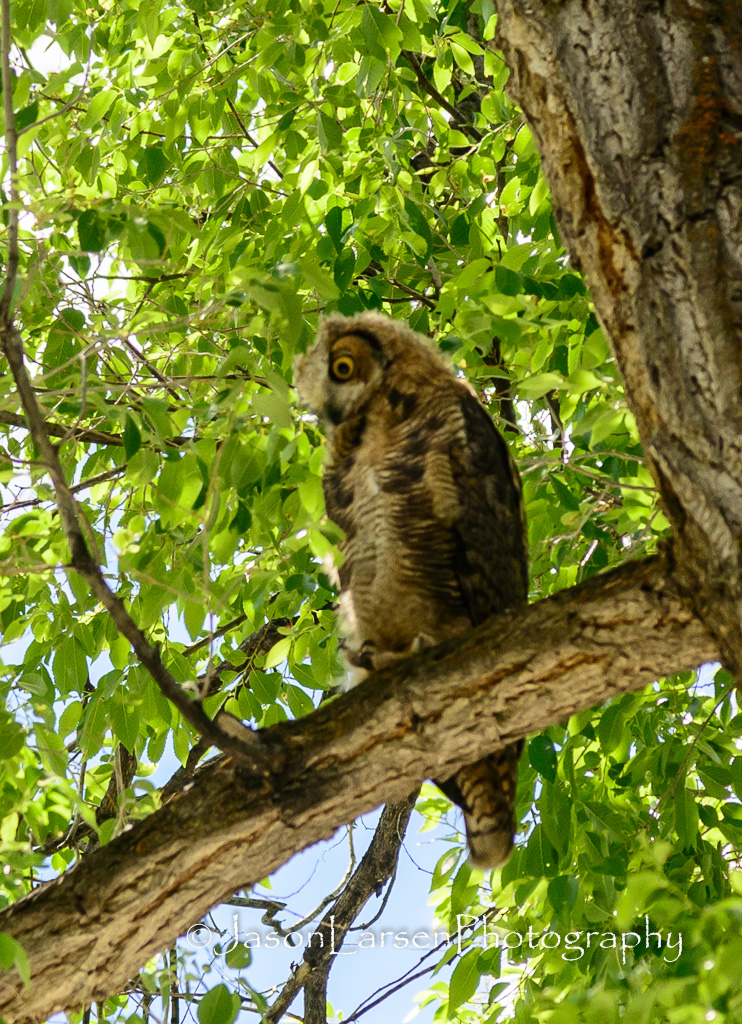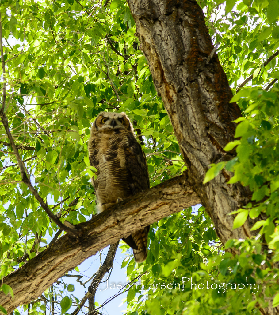 On the Saturday of Eagle Flight Days, as we went over to the city park for rides and fun, we were treated to 3 owls in one of the large trees in the park.